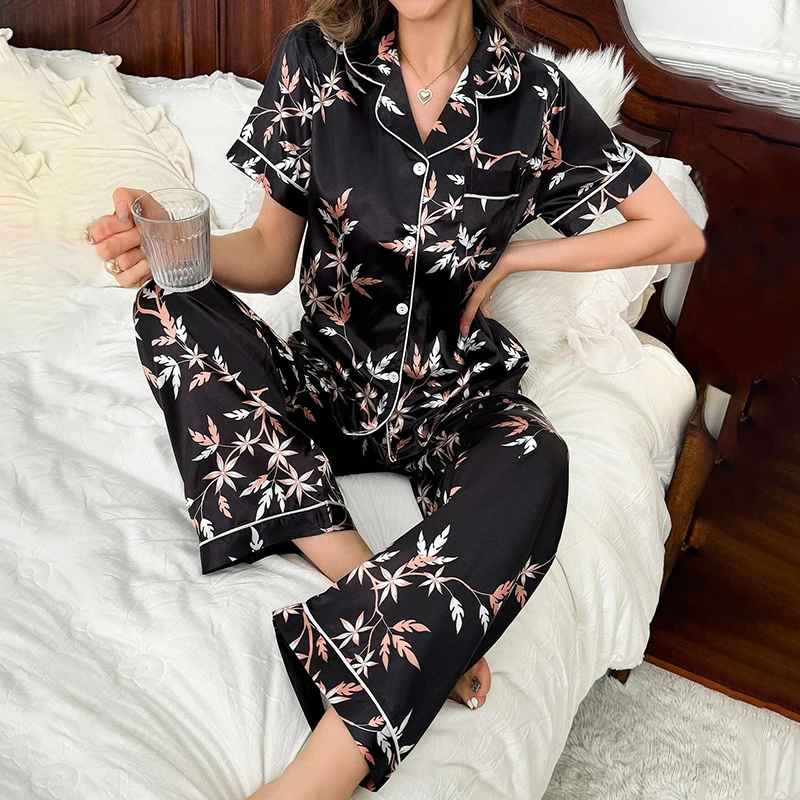 Naisten silkkipyjamasetti